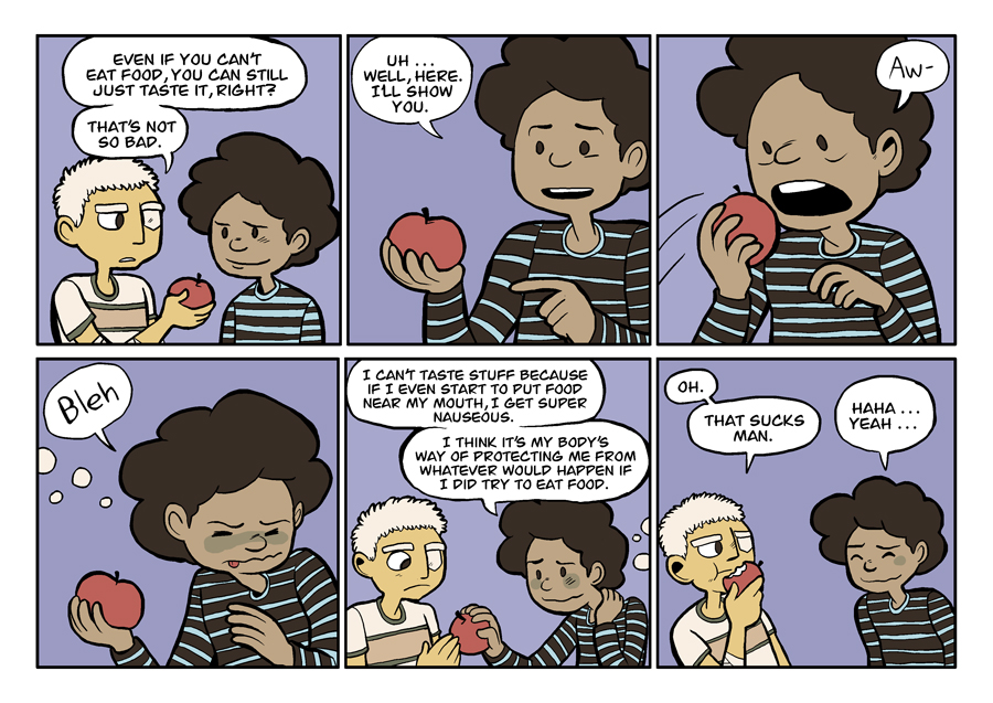 Two bonus pages for this chapter! If you follow me on Tumblr you may have already seen this. A lot of people were asking me if West could still taste food if he wanted to, and what would happen if he did try to eat, and so on. It goes without saying that West(s disembodied monster stomach will never make PERFECT real-life logical sense, but I decided to make a comic to help answer those questions. But don(t worry about it too much. New chapter starts soon!