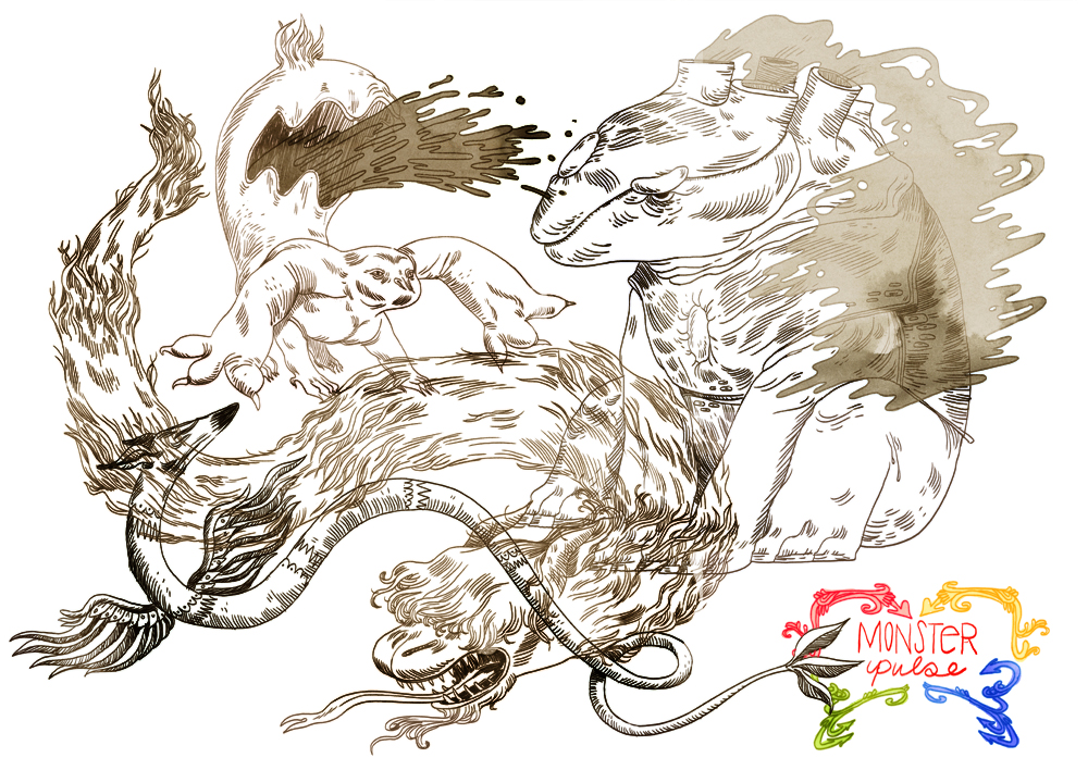 I was so happy when she sent me these medieval-style renditions of the monsters! I(m glad I get to share them with you now. Rixis is my favorite! :] Thanks Emily!