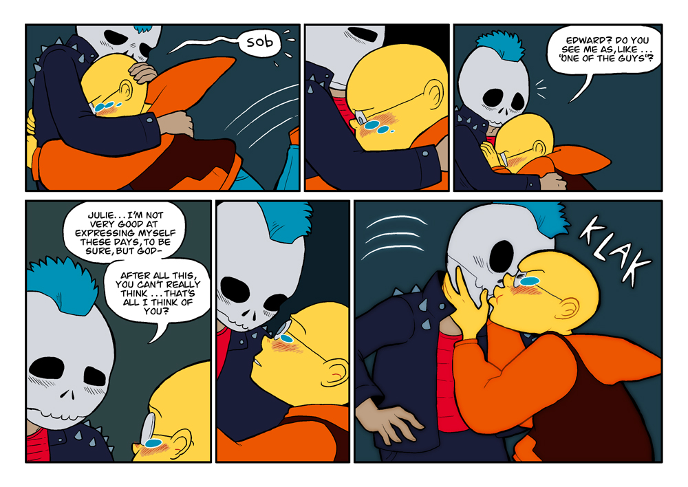 When I envisioned this chapter it was Edward who grabbed Julie(s face and kissed her but as I was actually writing it I realized that that was the opposite of what would happen, haha.