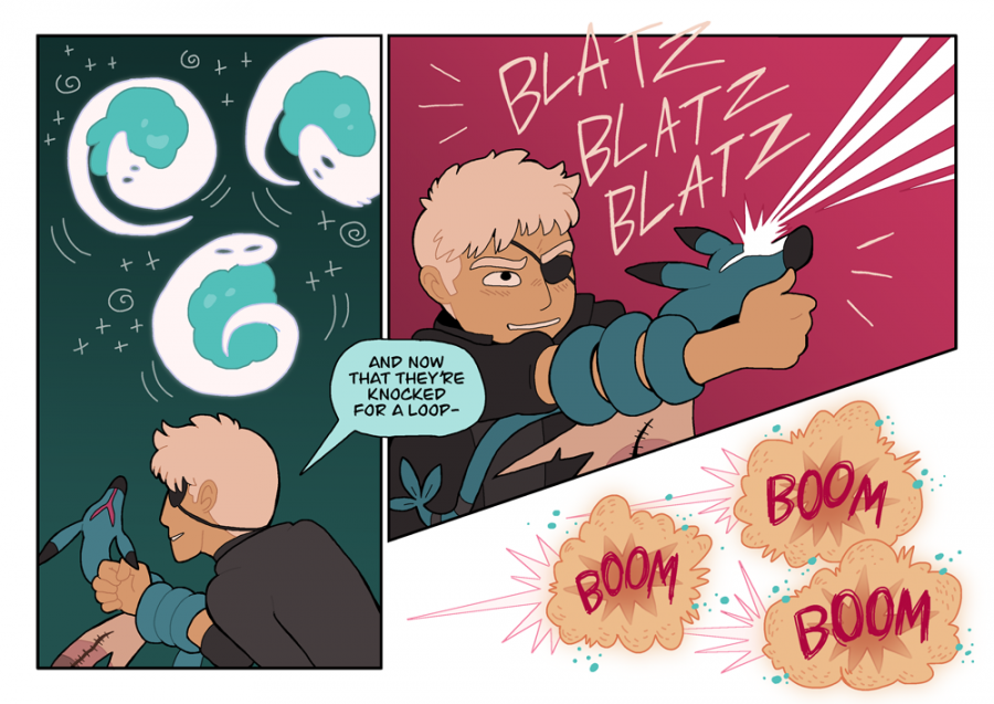 It was established that Rixis's lasers make Guuzy's goo explode in chapter 16,