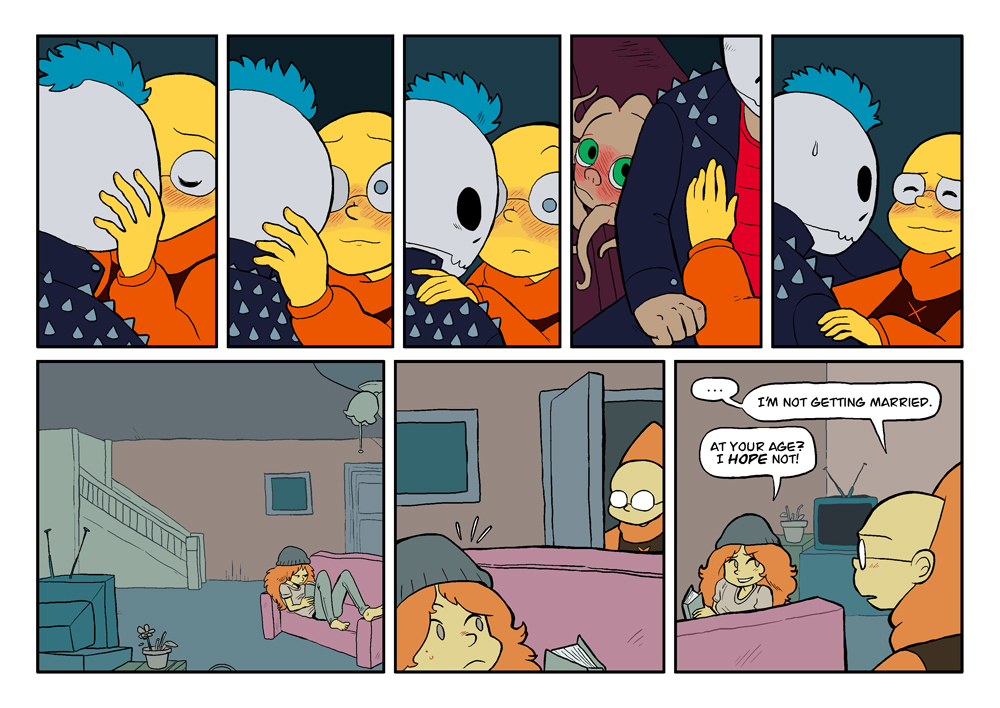 It must be pretty weird to kiss a human skull. But I think it would be weirder to kiss a weird creature who is pretending to be a face, so.
