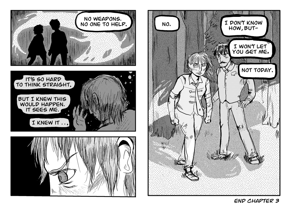 That(s the end of the chapter. Thank you for reading! There will be bonus comics and title pages this week and chapter 4, the last chapter of this first arc, will begin in a week. I really appreciate all of you who take the time to read this comic, and those of you who comment or buy things from the store to help support it. If you enjoy the comic, I would love it if you could spread the word to others. Thank you all. <3