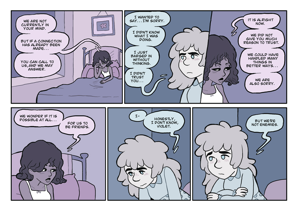 Violet's pretty glad to be sleeping in her own bed again. /:]