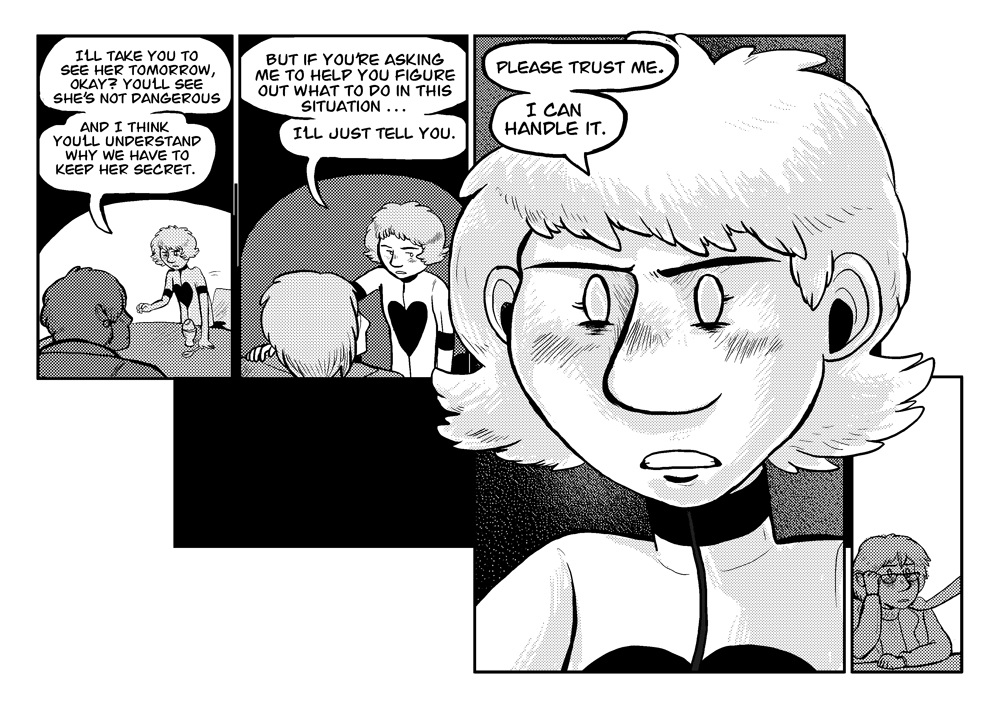 This is the last official page of Chapter 4. The next week will have some FULL COLOR bonus pages, and a guest strip, so stick around! Also, next week will be the last week of the "favorite character" poll, so make sure to vote if you haven(t!