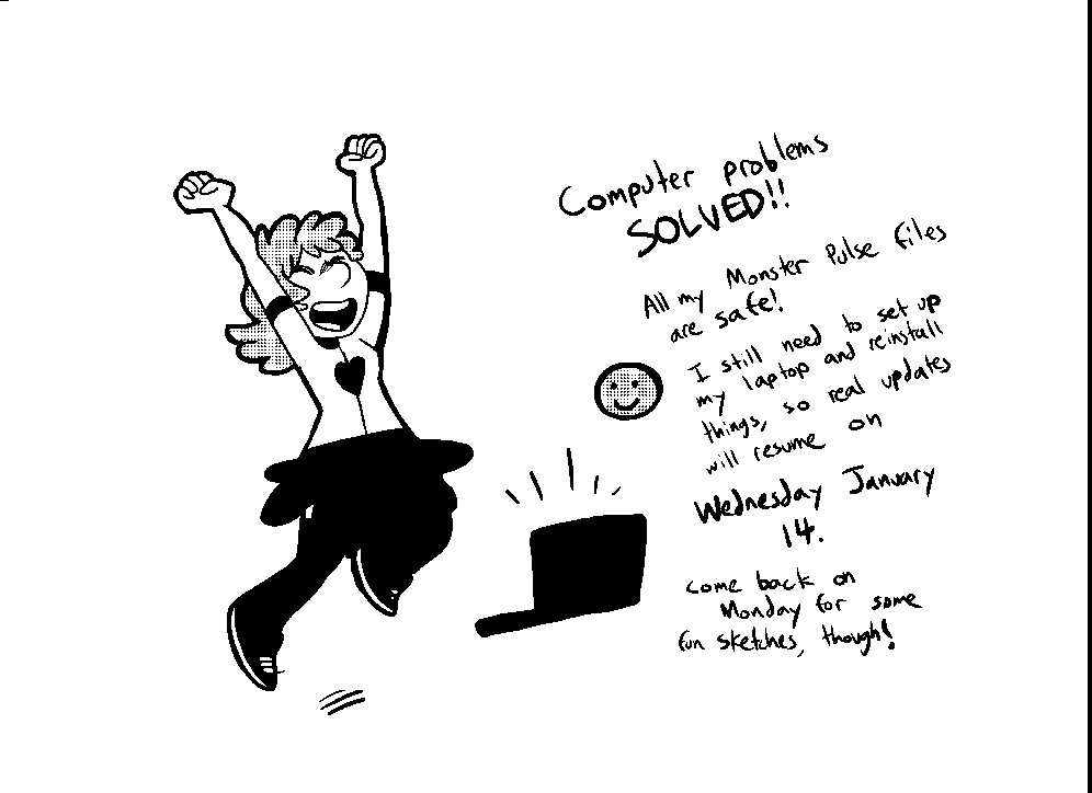 You guys, I am SO relieved. I really thought I might lose everything, but I didn(t. All the files for Monster Pulse are safe :3