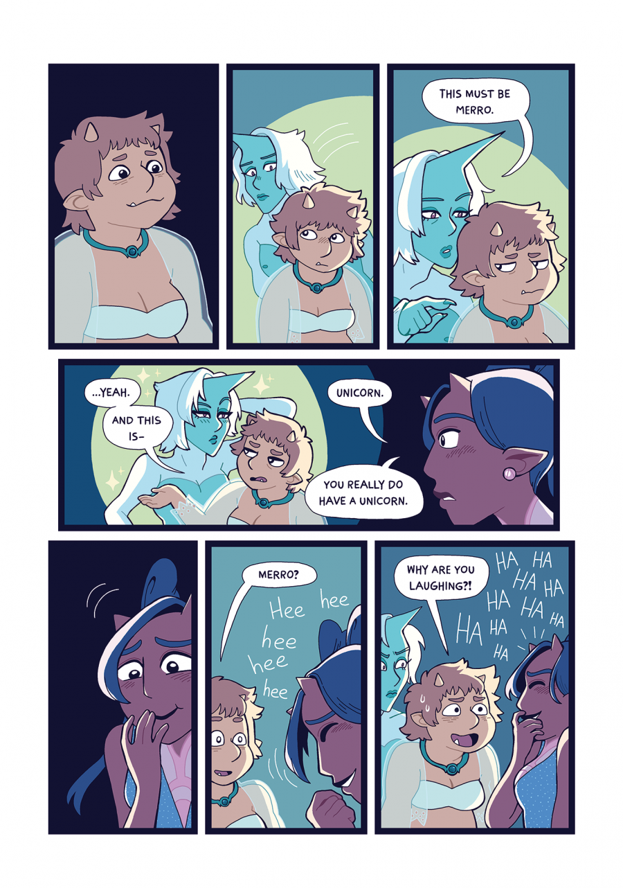It's about a nerdy girl who is obsessed with a fantasy book series about a world of griffons, and she wishes more than anything that it could be real. To her surprise, she finds out the fantasy world IS real, and they need a Chosen One from her world- but the Chosen One is not her. It's the popular girl who she hates- Tiffany. So, she resolves to "steal" Tiffany's magical destiny and claim it as rightfully (??) hers. It's a story about fandom, magic, jealousy, and friendship- and I think it's really special. And of course the wonderful Maddi Gonzalez did the art, which is beautiful and really enhances the story. :]