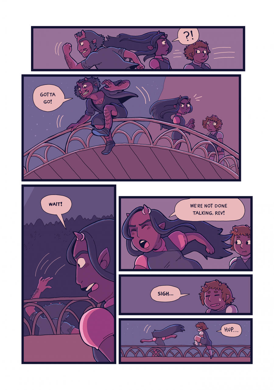 We're about halfway through Chapter One now... hope you guys are enjoying it so far! I like drawing Merro freaking out and scrambling around, lol.