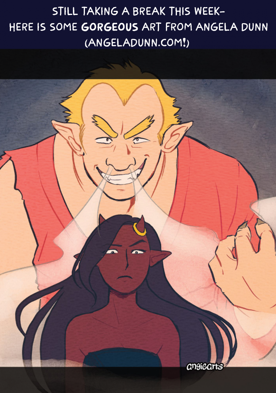 Thanks again for the fantastic art, Angela! I really love this, especially their expressions... you really captured them! Please check out Angela's work! And come back next week for regularly-scheduled comics!